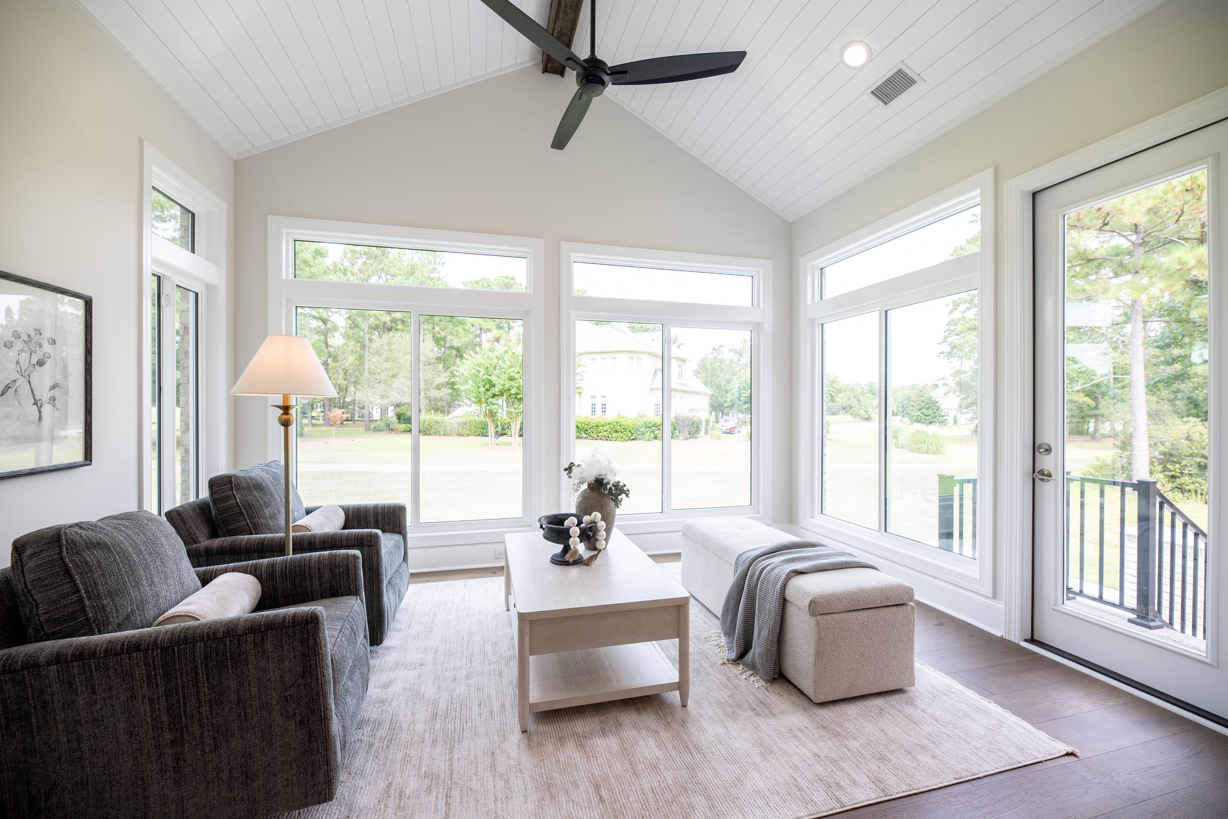 • Shiplap ceiling detail in sunroom