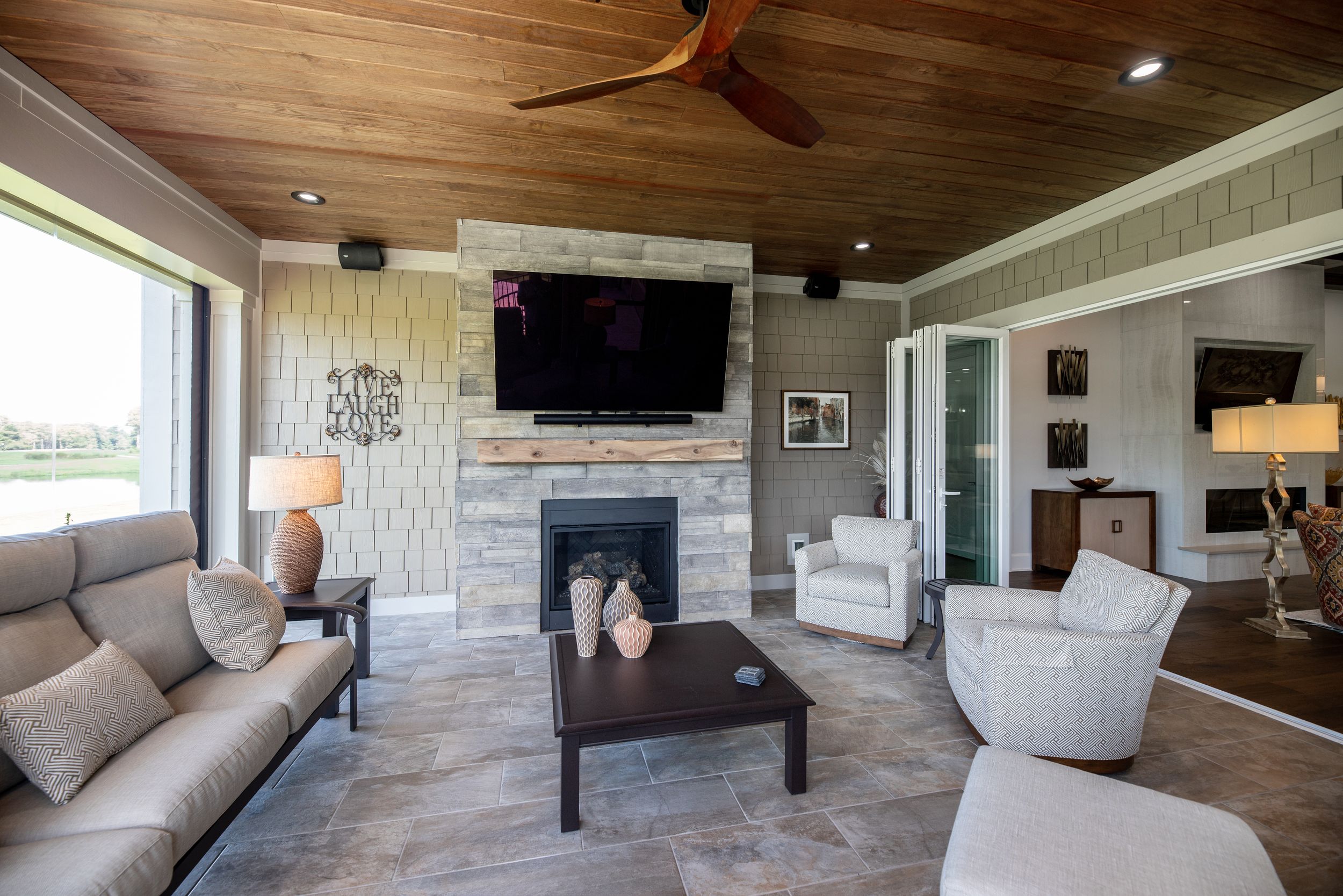 • Retractable screen system and stone fireplace on the back porch
