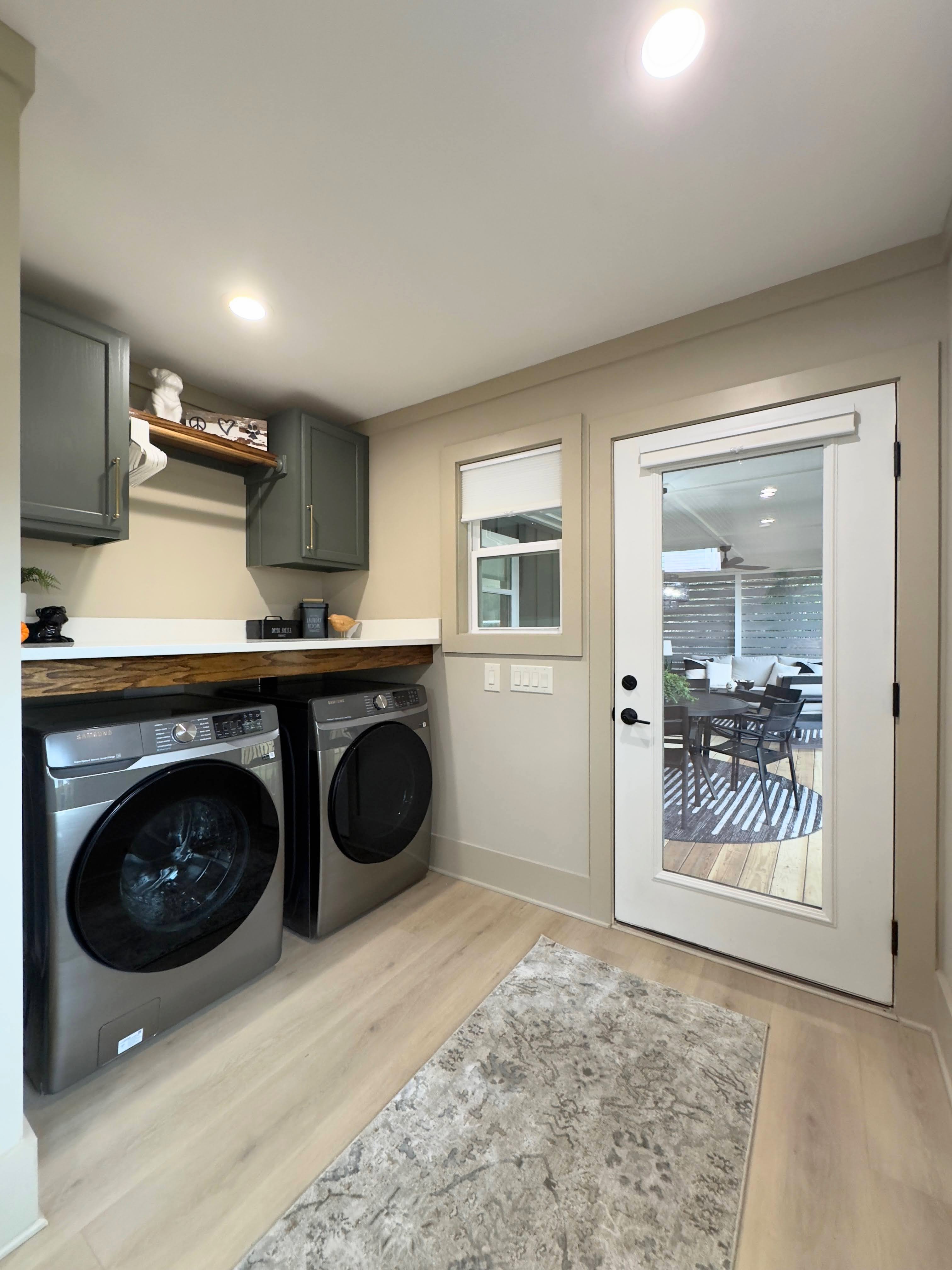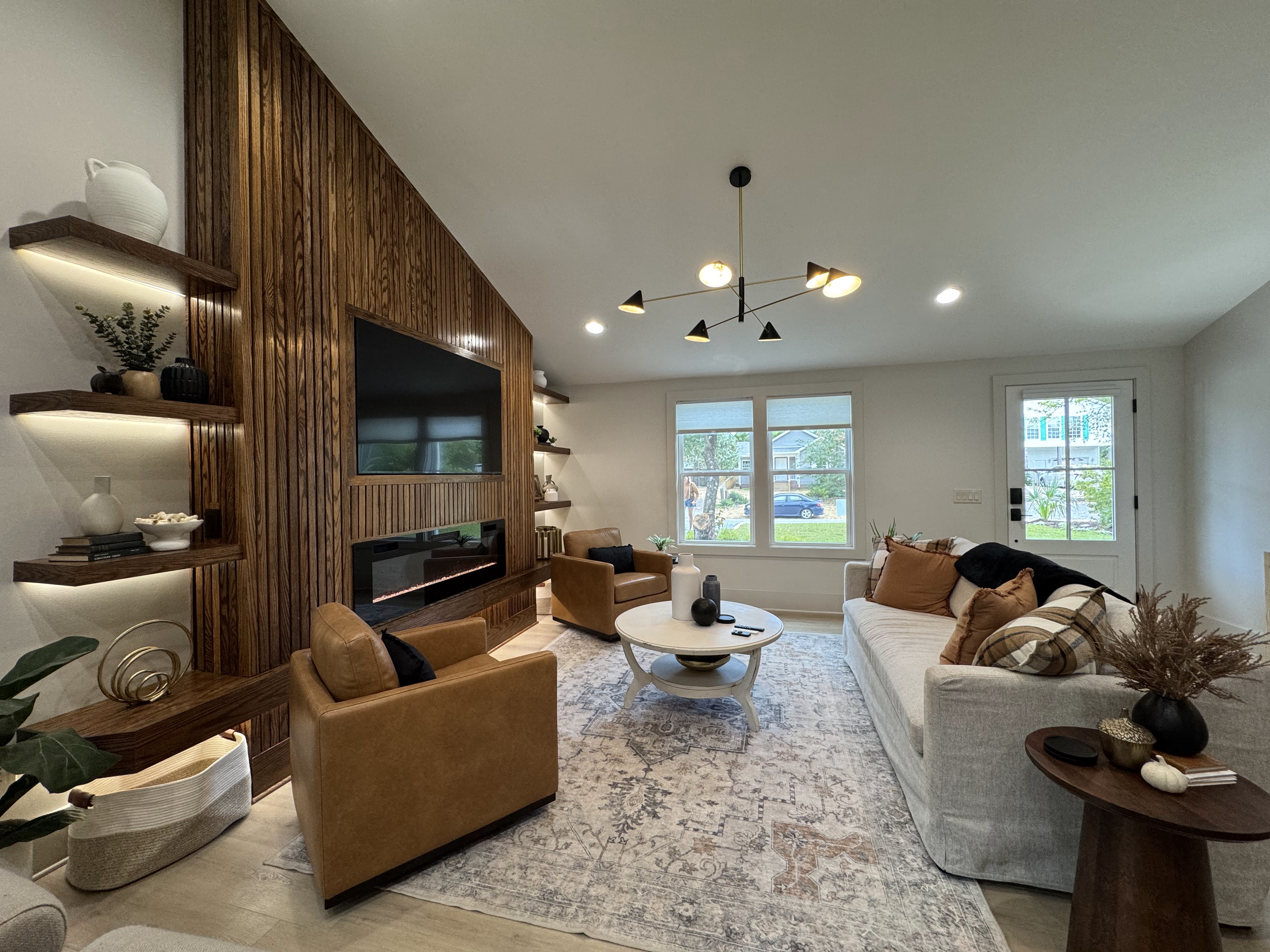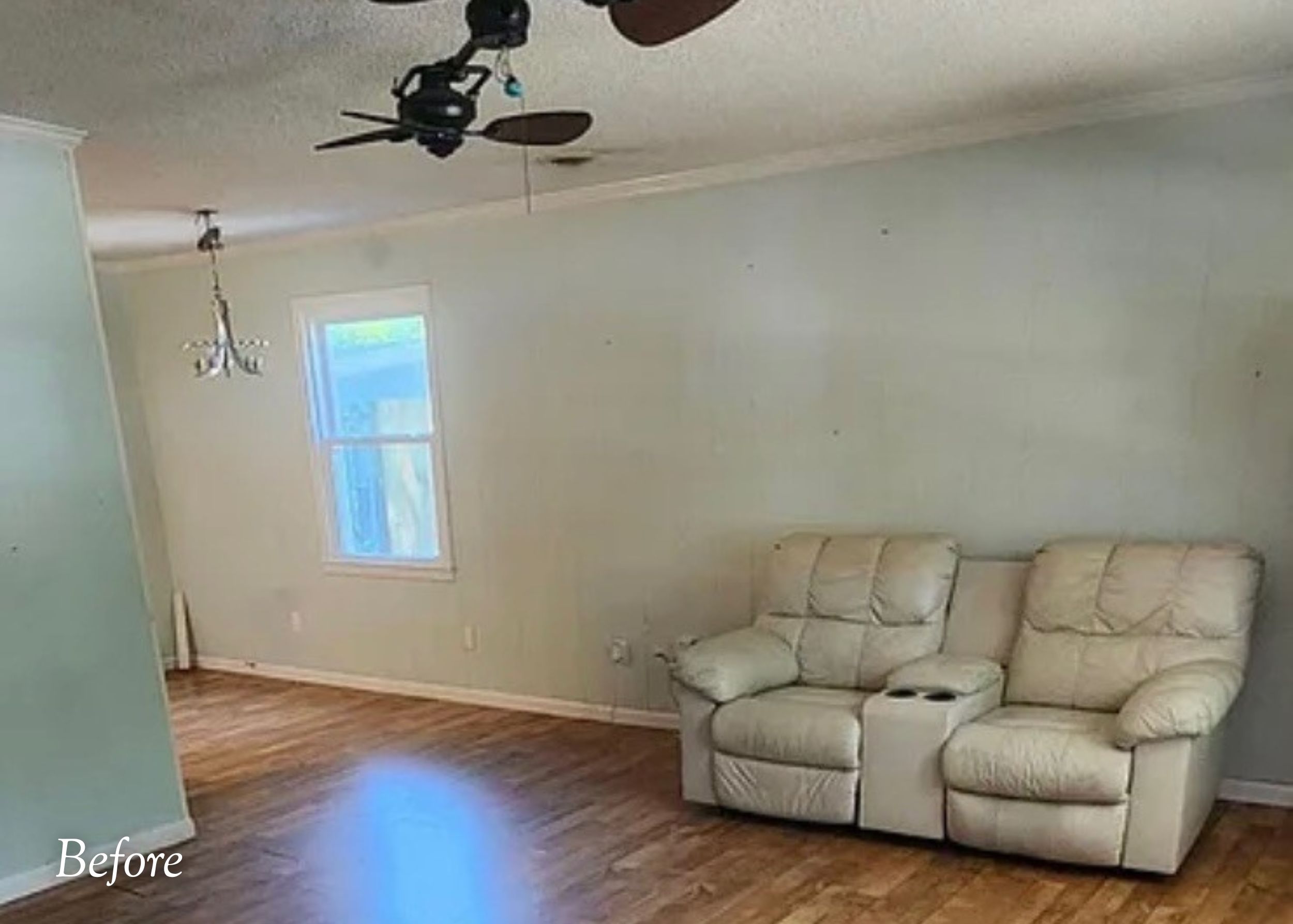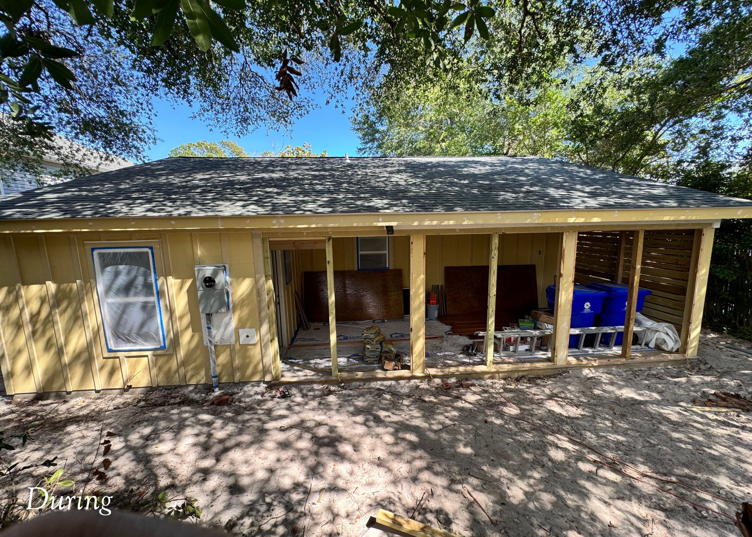 This little bungalow had lived a full and happy life as a beach house on Oak Island, but it was time for some much-needed love and attention. The scope of this project, by Centerline Development, included adding a rear porch, expanding the front porch, reworking the roof-line, and updating the kitchen and single bathroom. Also added was an electric fireplace, a kitchen island, and a laundry room to enhance functionality and comfort. The exterior received a refresh with new siding, fresh paint throughout, and updated landscaping to complete the transformation.