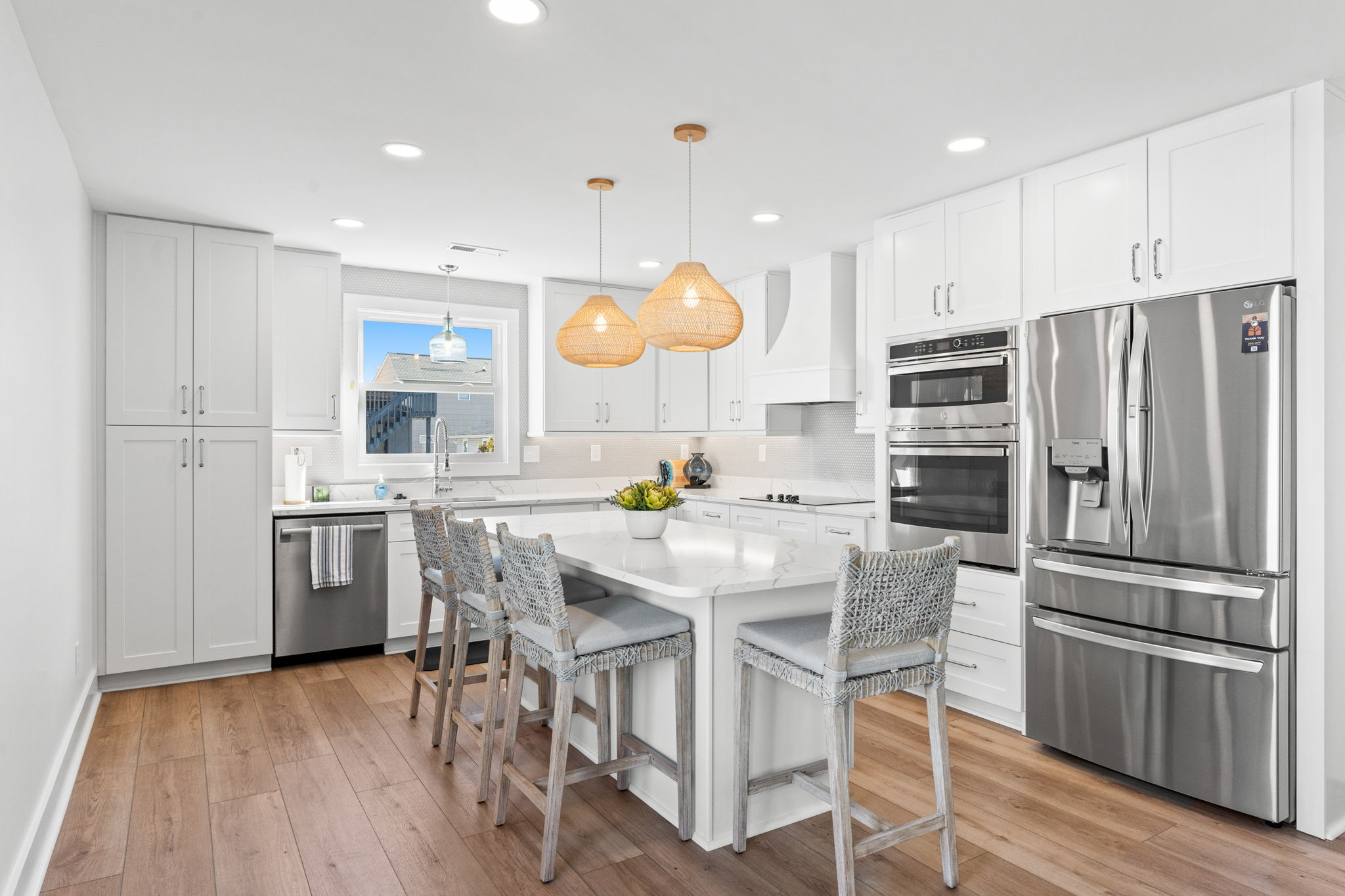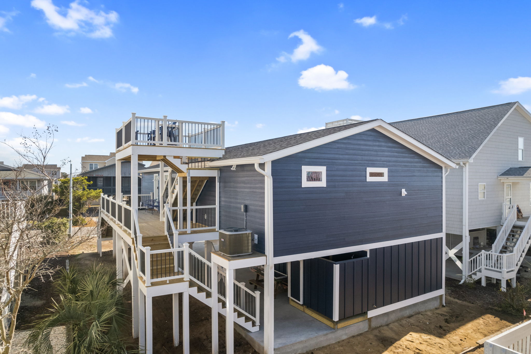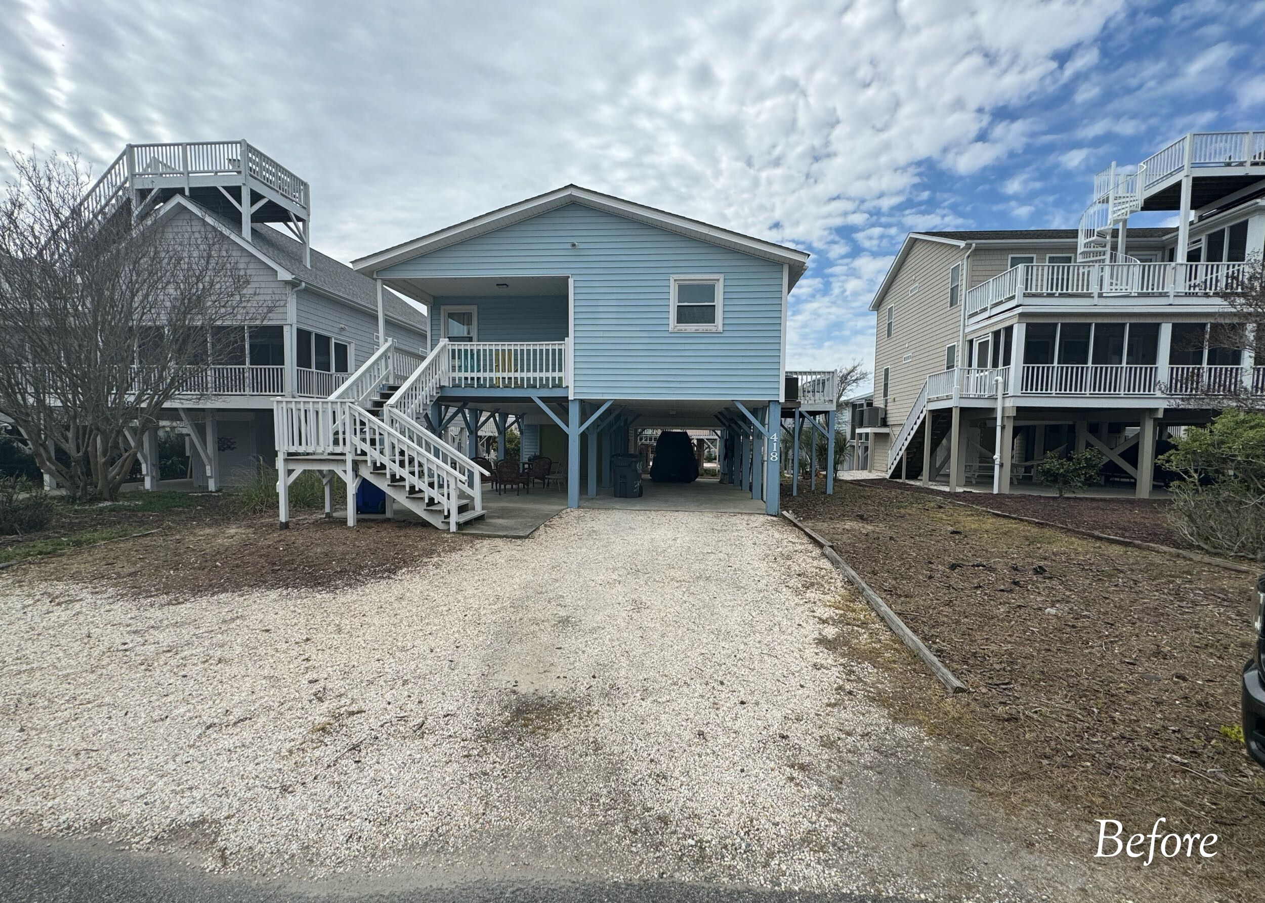 Welcome yourself to this elevated whole house remodel. The RealPro Renovation team stripped this house down to the floor and exterior wall framing. They cut all the existing pylons, lifted the home 15ft in the air to replace 35 previous pylons and expanded the footprint for a finished elevation of 3' higher. Every bit of this home has been revamped. The kitchen layout completely changed and new exterior entry points were added. The new bedrooms and bathrooms received all new sub-floors, flooring, and walls. All new kitchen and bathroom cabinetry, counter-tops, backsplash, and fixtures were installed. This home has all new plumbing and electrical run throughout, not a bit of the original remains. On the outside, RealPro expanded the decks including adding a crows nest, upgraded railings, and a screened porch. The renovation includes all new siding, windows, and doors. Under the house they created a storage room, golf cart garage, and an outside shower with a finished under-house ceiling. All new landscaping completed the finishing touches and gave this property the updated look the homeowners desired.