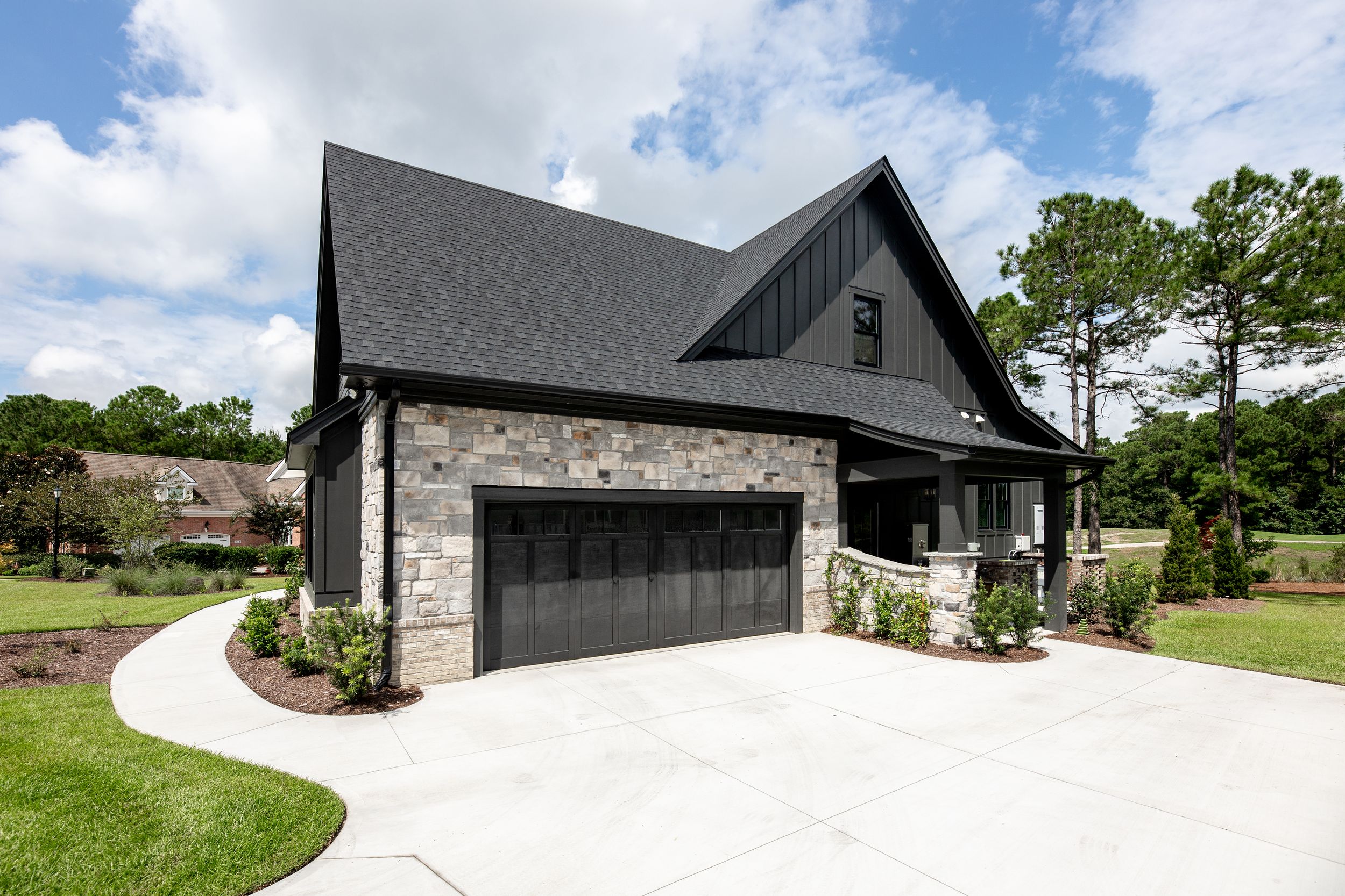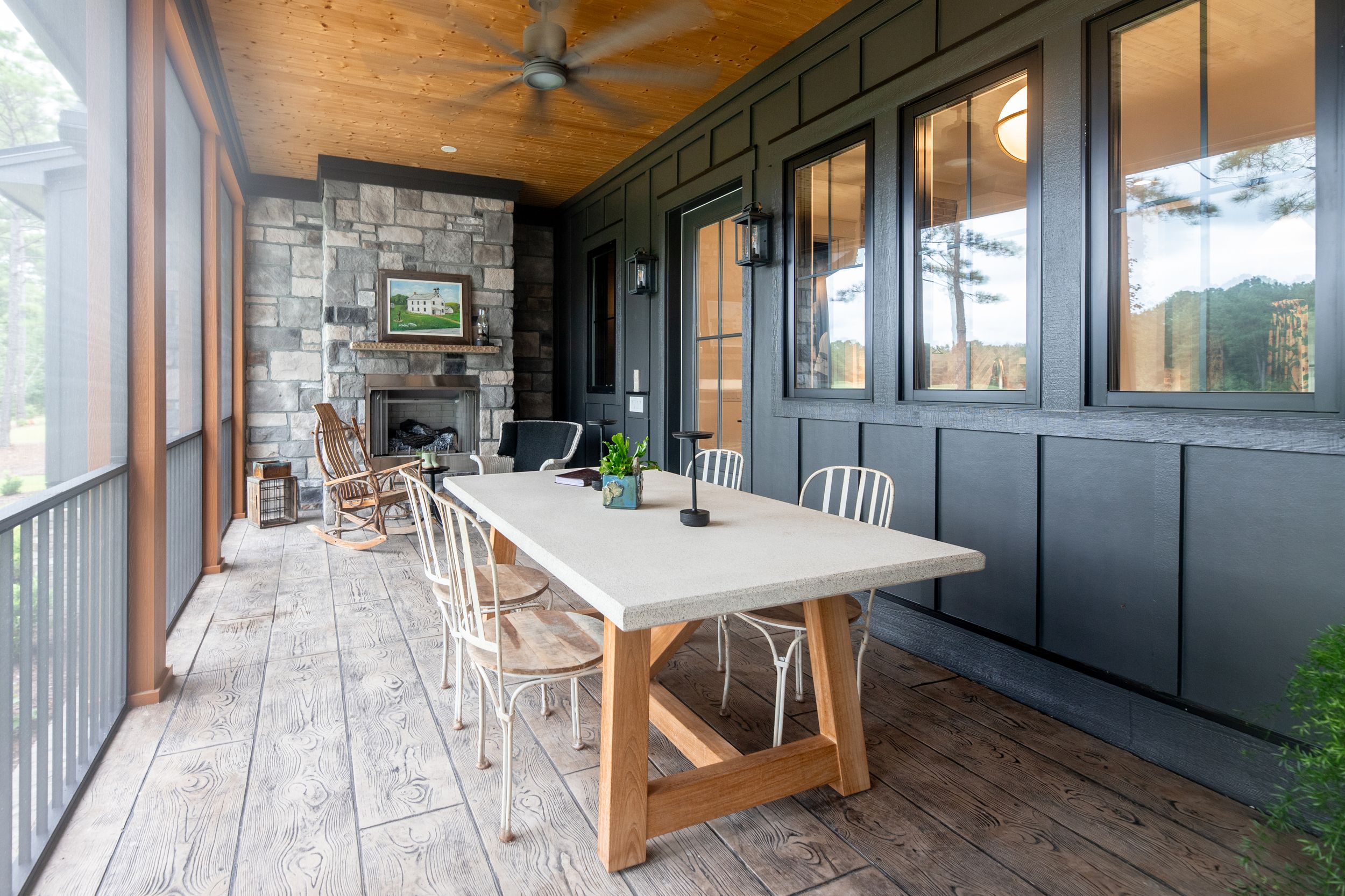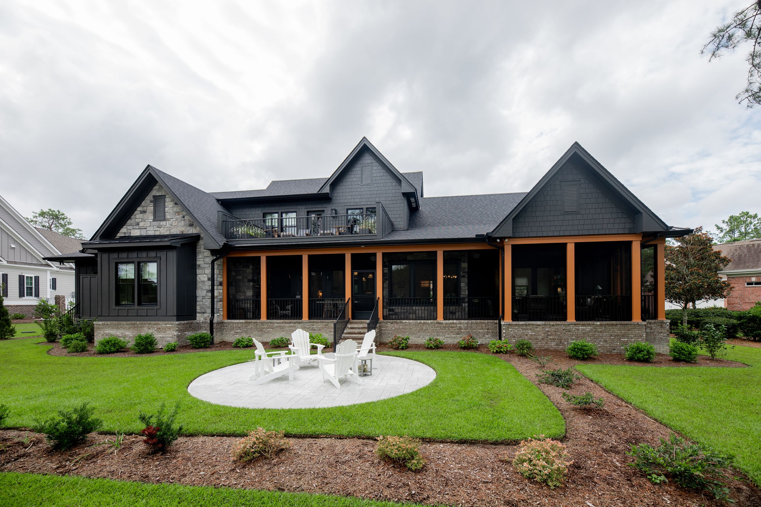 • Stone exterior with cement board siding & aluminum rail system