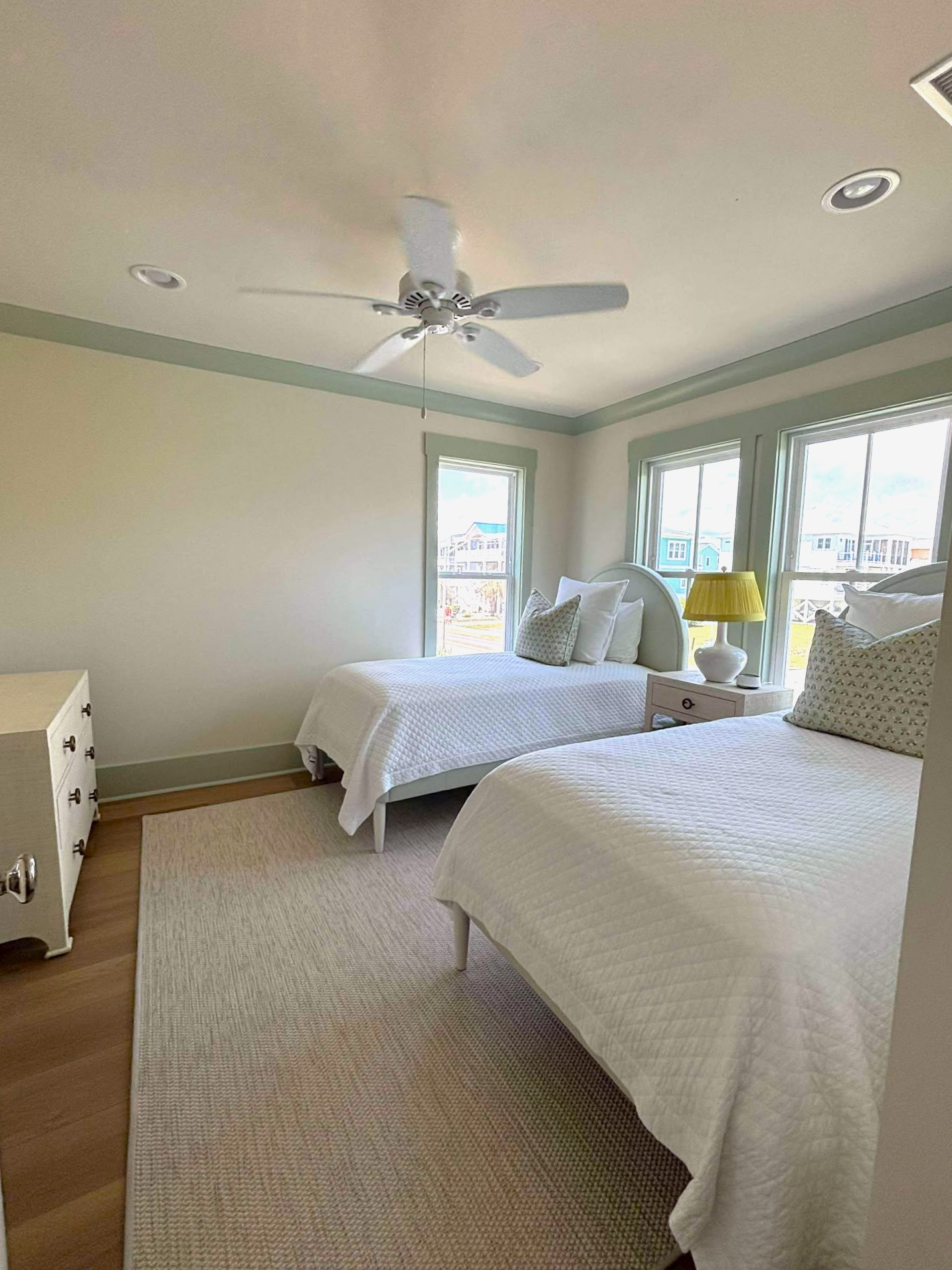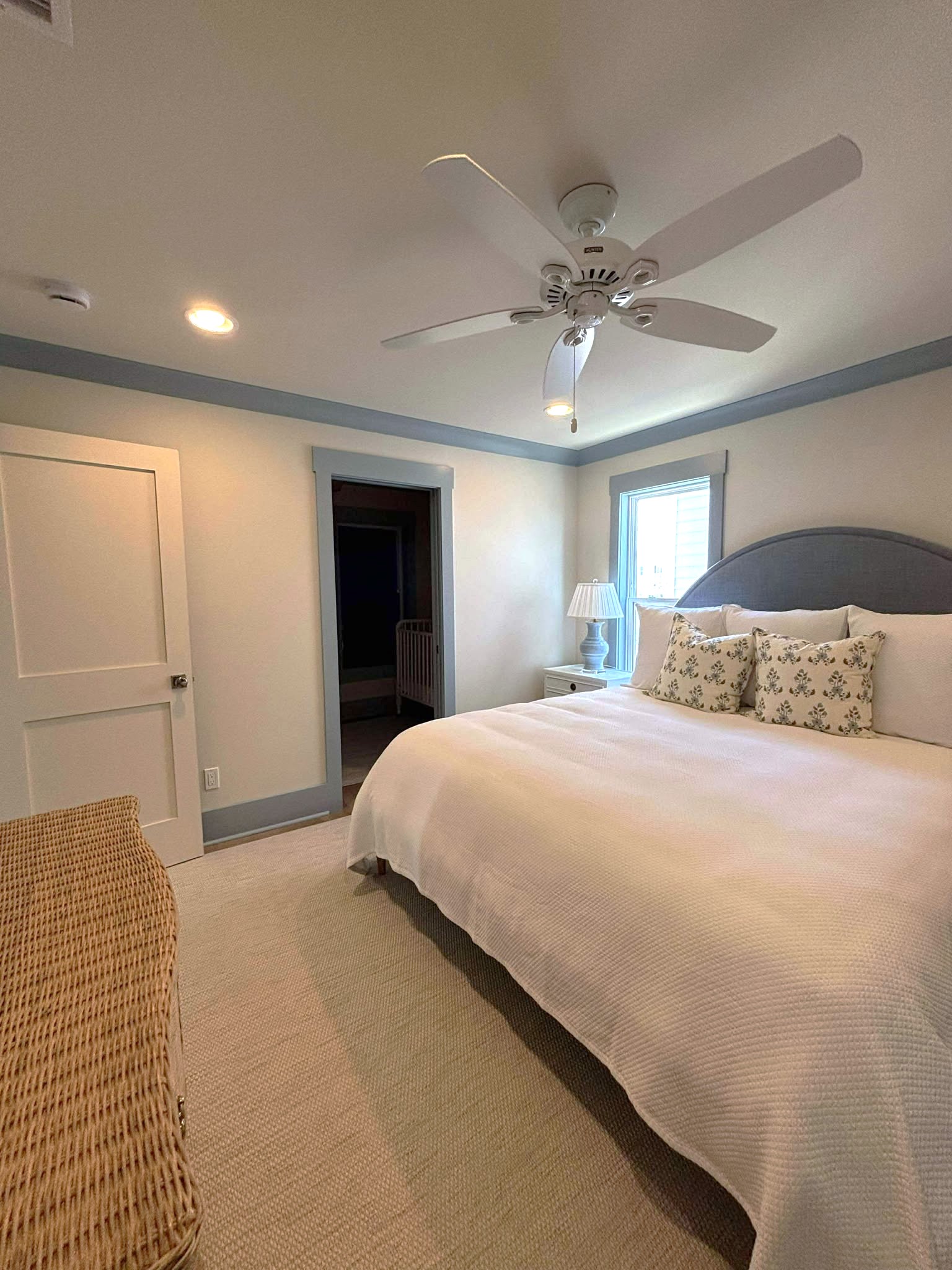 This whole-home renovation was completed by Coastal Carolina Construction. The original layout was a 4 bed, 4 bath house with 2,000 sq ft and two decks off the front. With the help of Duffy-Magas + Associates architectural design, Coastal Carolina Construction was able to start the process of making Sandy Memories a reality. The team started by taking the house down to the studs; removing the existing siding and front decks. After everything was removed they were able to start the framing, added a powder room, room extension, and elevator to where the decks were located. This home received a few structural/ functional upgrades such as Hardie plank board and batten siding, spray foam insulation in the exterior walls and roof, Safe and Sound batten insulation in the interior walls and between floors, new impact glass windows, two impact glass sliders, and a multipoint locking door on the ocean side to help with wind driven rain intrusion. Sandy Memories went from a basic beach home to a tech savvy abode with a whole home filtration system, Lutron lighting system in the living and kitchen area, and surround sound throughout. The home is now 2400 sq ft home with an elevator, 4 bedrooms, and 4.5 bathrooms. The inverted floor plan was kept with an upgrade to all appliances, flooring, cabinetry, electrical, and plumbing.