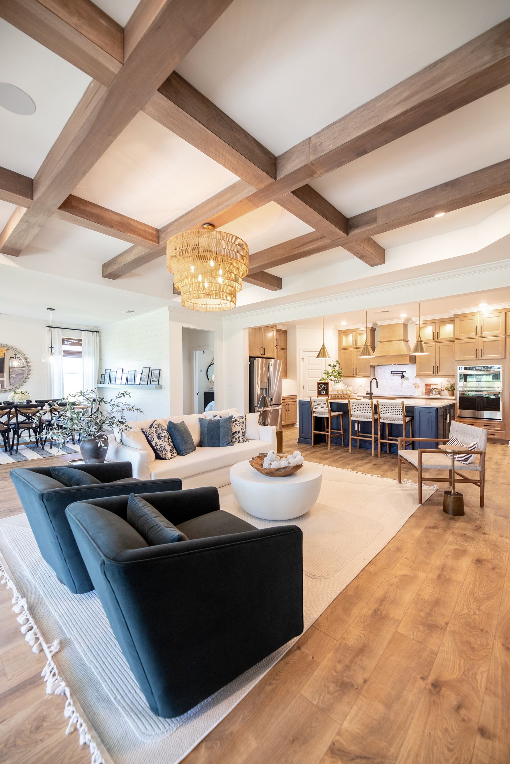 • Stylish coffered ceiling in living room & shiplap trim throughout great room