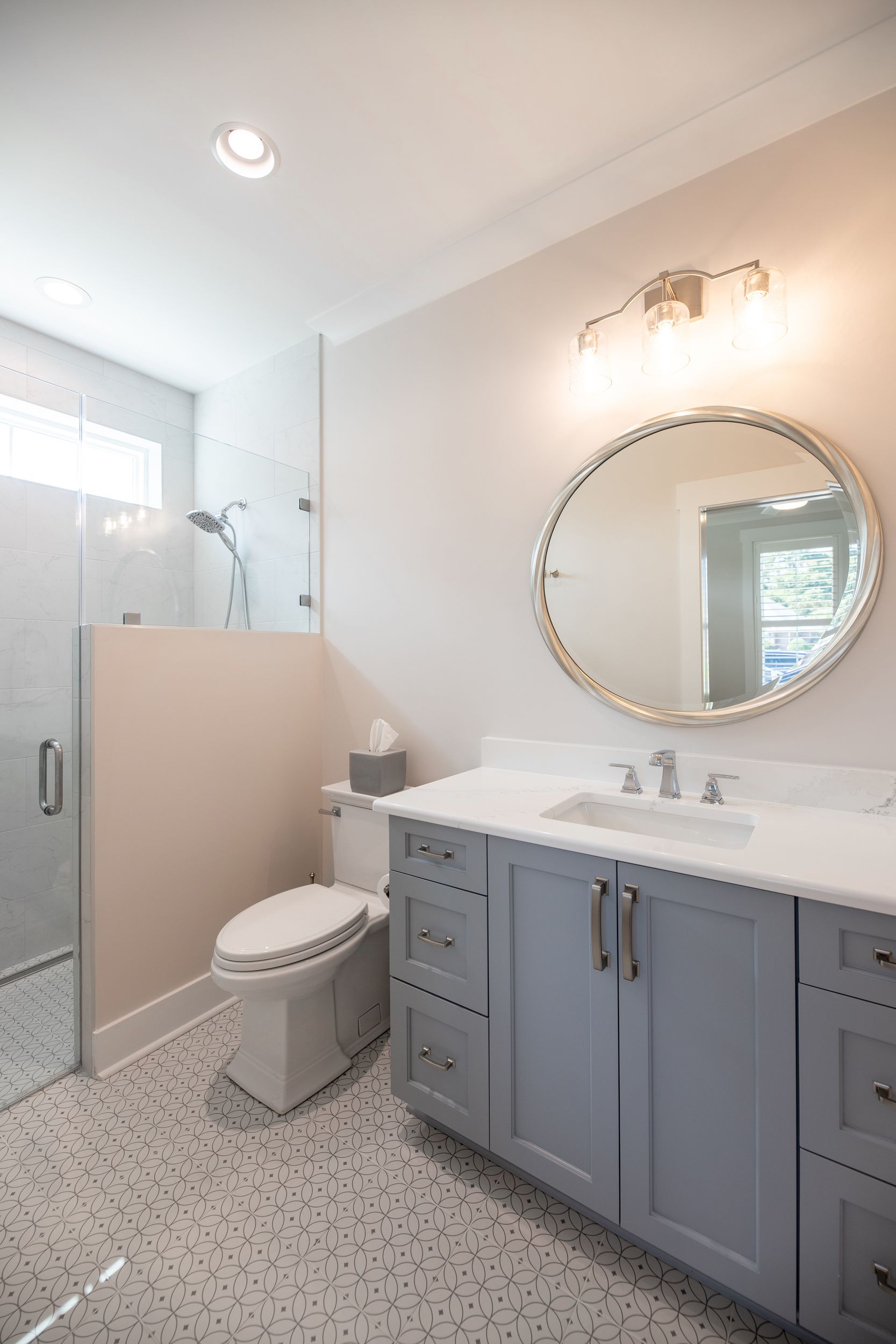• Stunning master bathroom with large zero-entry tile & glass shower
