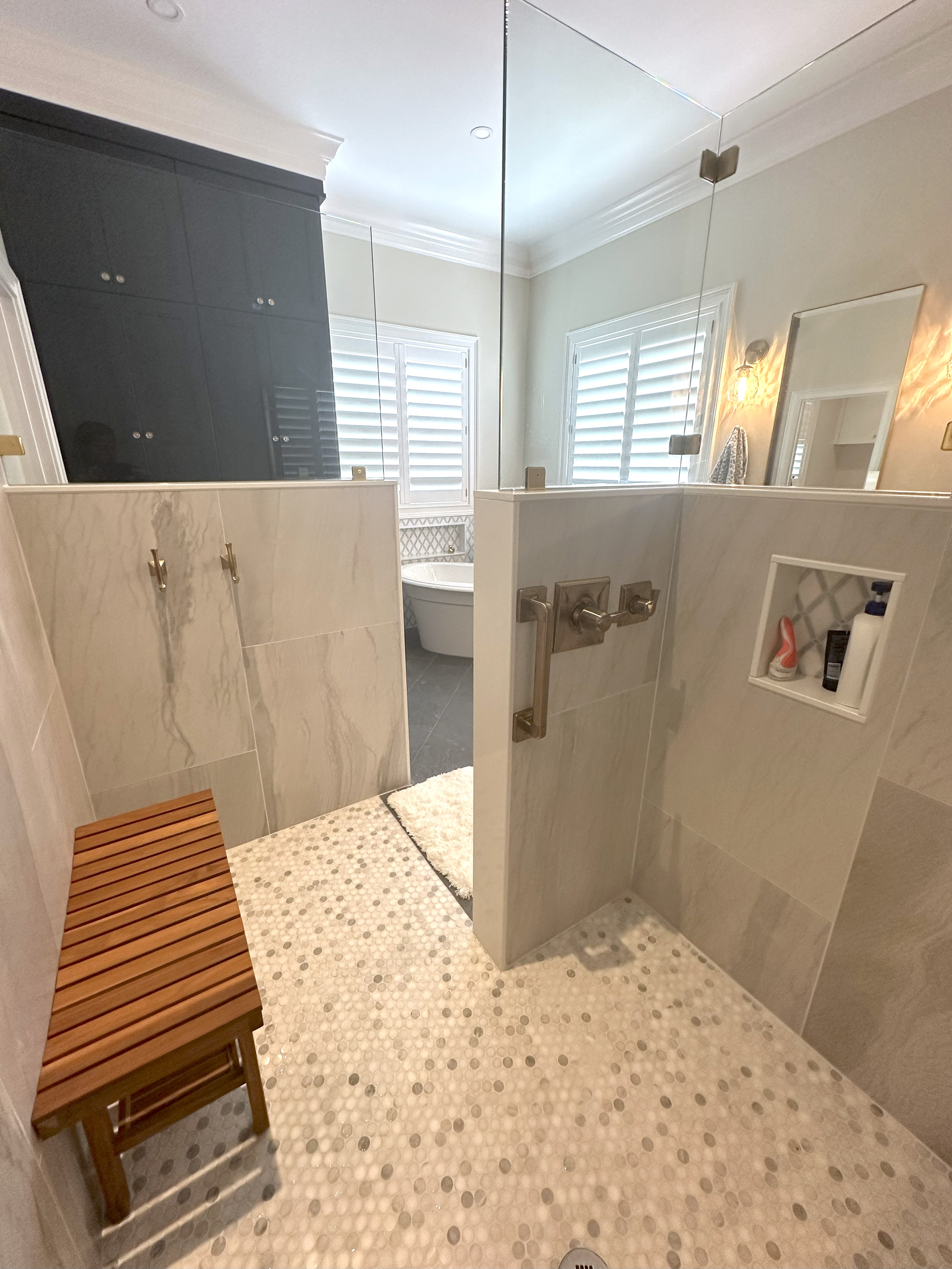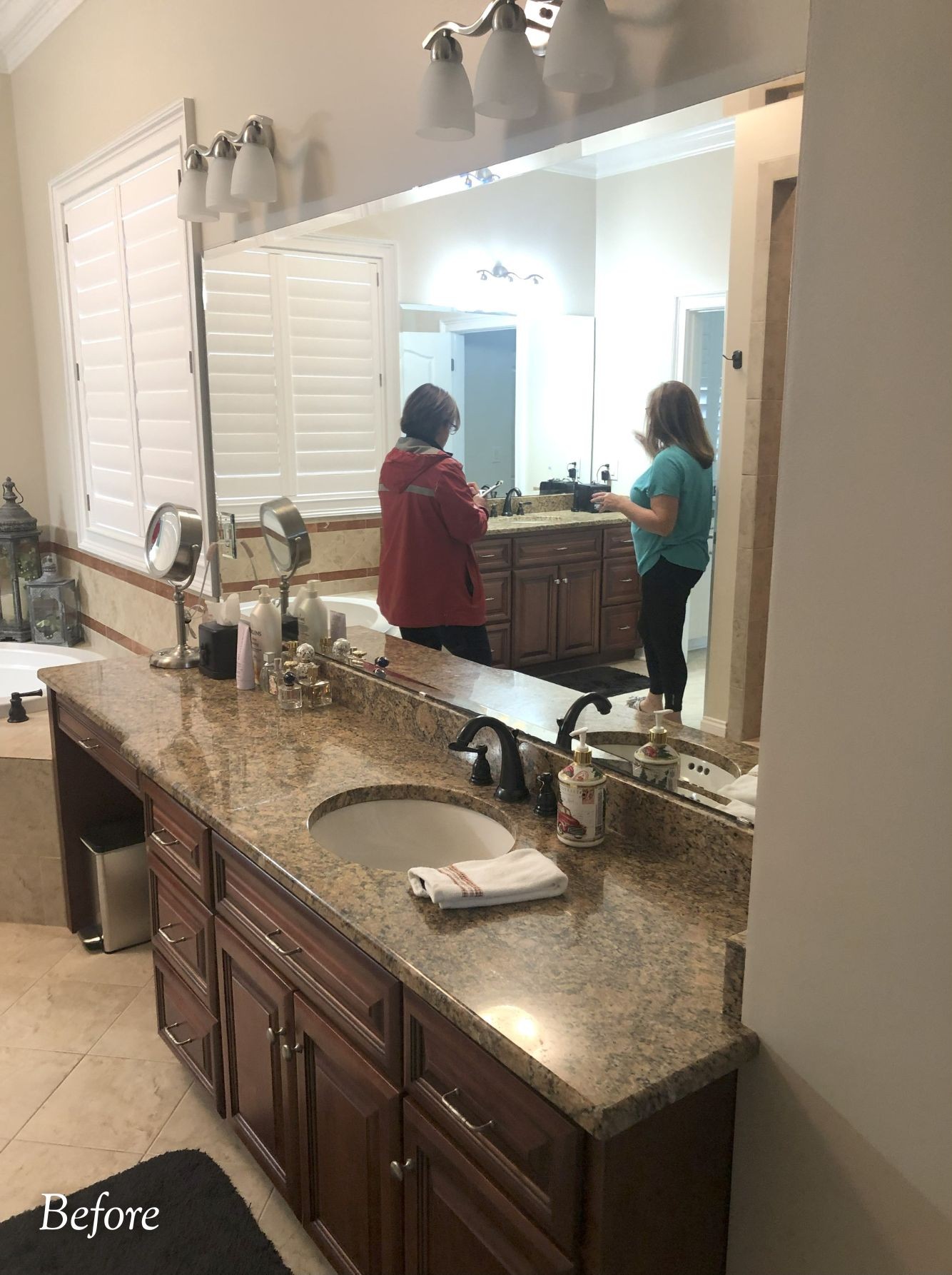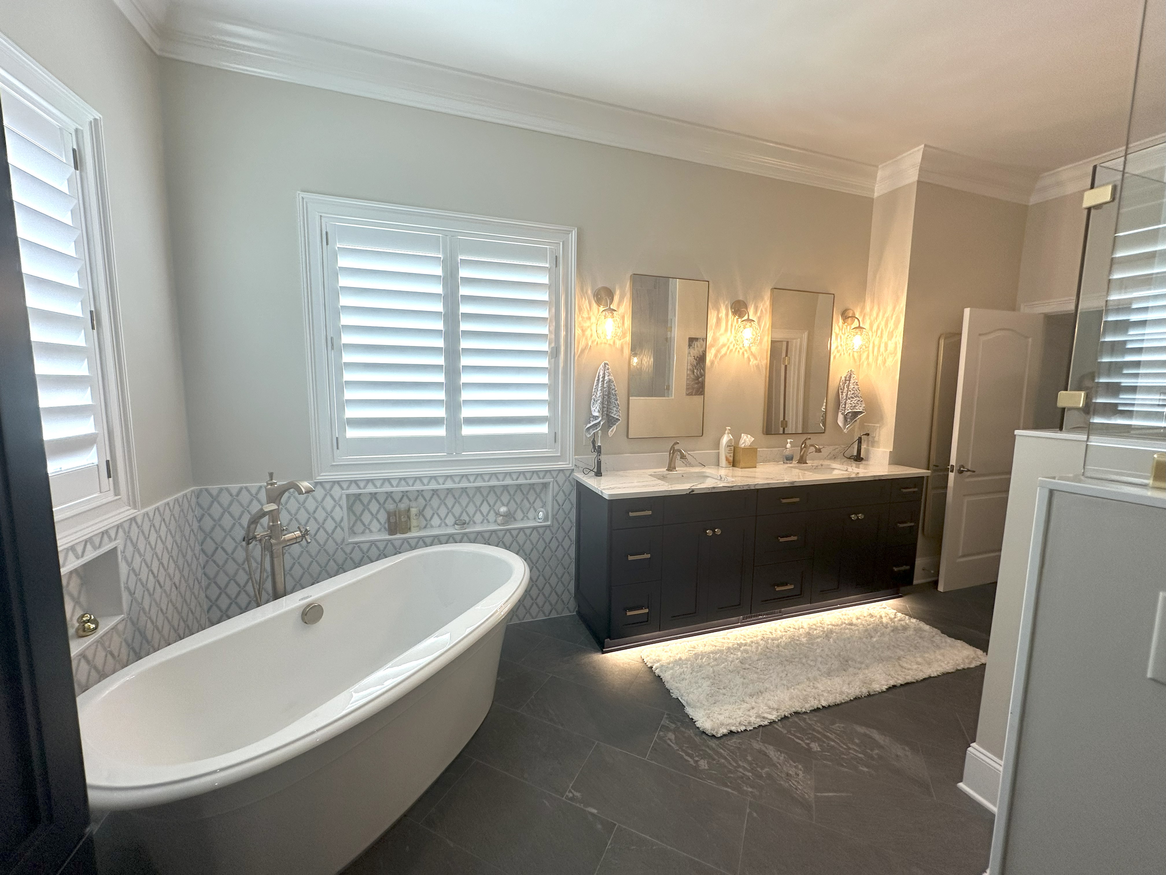 Making a home uniquely your own can be an overwhelming task and the team at Braddock Built Renovations is uniquely versed in making this task less daunting and more rewarding. Their customers at this estate home in Calabash desired a phased approach to their whole house renovation starting first with their primary bathroom, laundry, and the guest suites, then moving to the kitchen, bar with a drop zone, powder room, dining room, family room, and formal living room. Custom cabinets in tailored paint colors set the tone in each space with different natural and man-made stone surfaces in each room. A large tile shower with zero entry, lighted shampoo niches, and shoulder-height knee walls keeps the shower area private while making the bathroom itself feel much larger. A palette of tone-on-tone finishes in the kitchen gives the chef a warm, peaceful place for culinary creations. Subtle textures and colors from the entry door throughout the home make this a truly beautiful, welcoming dwelling.